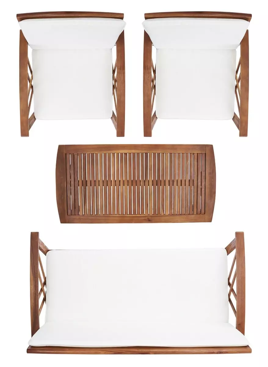 Store outdoor furniture indoors or cover well when not in use. Remove wooden furniture from standing water. Dust regularly with small brush or vacuum. Spills should be taken care of immediately before they harden or stain with a slightly dampened sponge. Do not use bleach solutions.