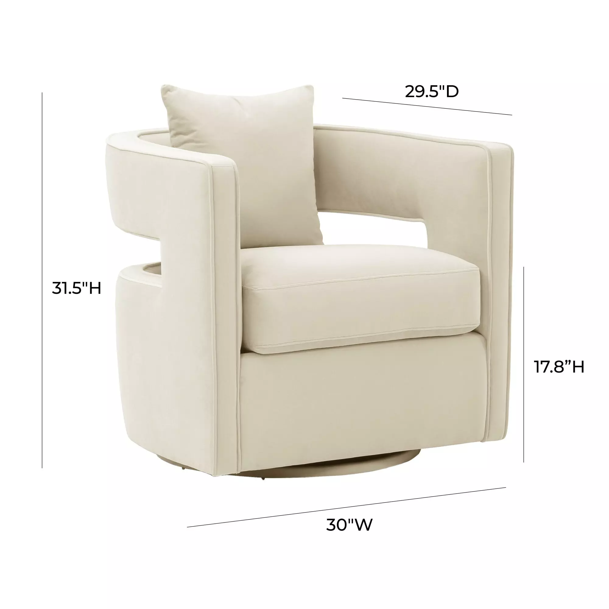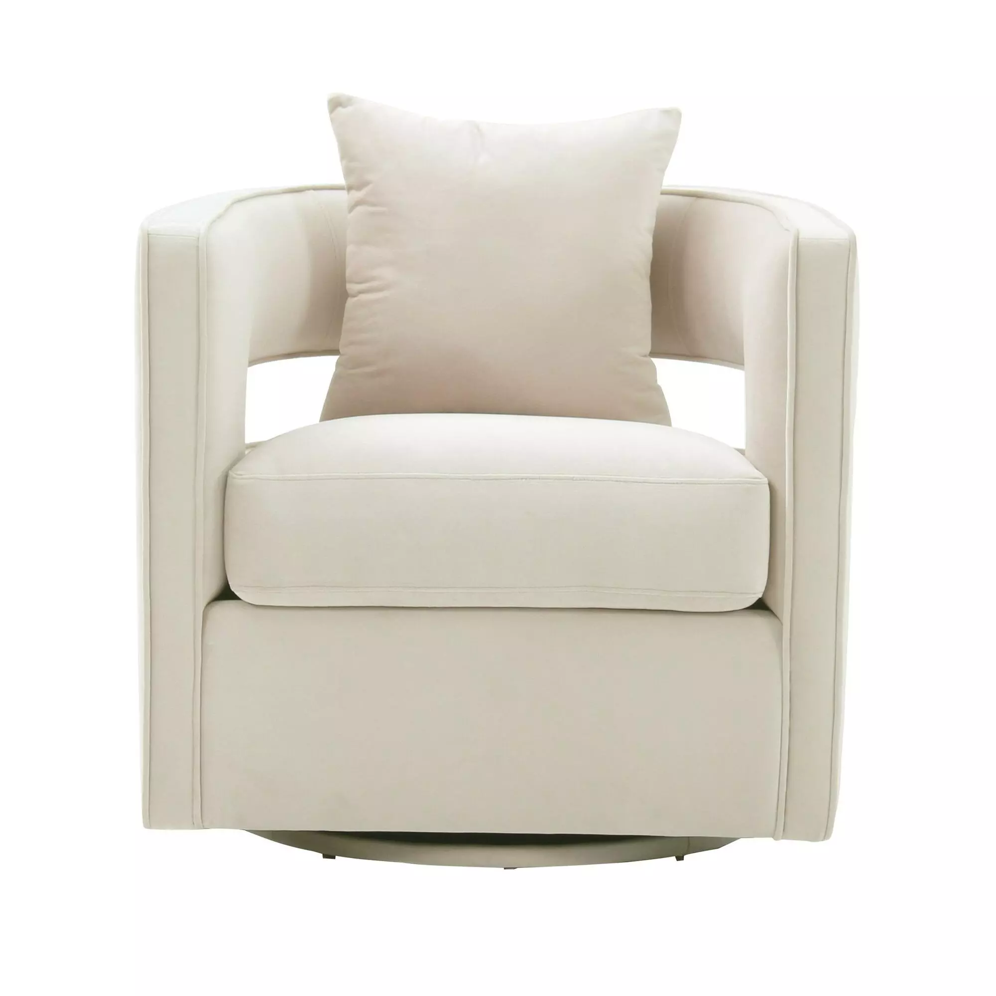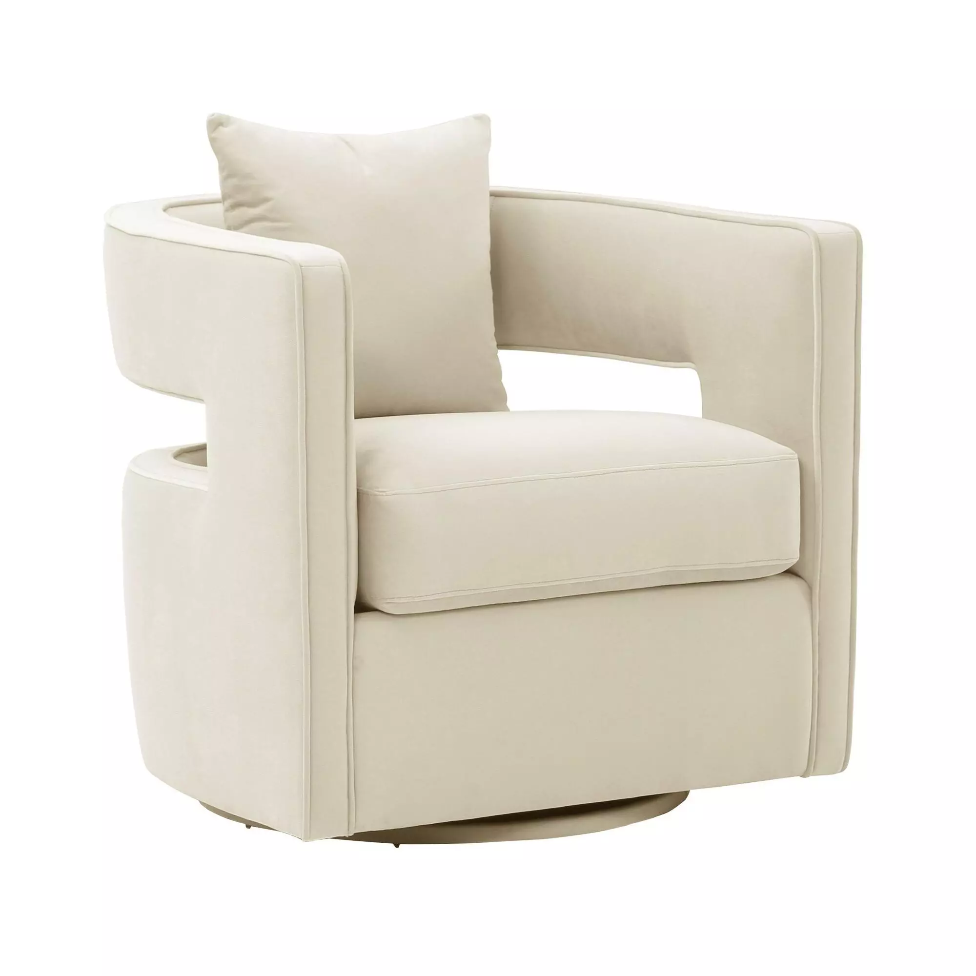 The minimalistic Kennedy swivel chair is versatile and stylish. A comfortable foam fill makes it as plush and inviting as it looks, while the solid wood frame and stainless steel legs set a sturdy foundation.